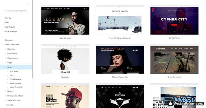 Wix ofrece una realmente enorme selección de plantillas temáticas ordenadas para elegir. Evidentemente, si estás comenzando un blog, no tienes que elegir necesariamente de las plantillas de blogs - eso es solamente lo que se aconseja.
