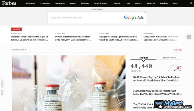 Forbes es el ejemplo perfecto para aquellas páginas web relacionadas con las noticias, que aún así promueven un diseño web limpio y organizado.