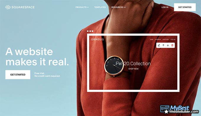 Mientras que este tipo de diseño web probablemente no te brindará ninguna idea nueva, Squarespace hace un trabajo asombroso integrando dicha imagen con la disposición general del sitio. Además, esa misma imagen también sirve para comercializar el producto de la marca, un creador de páginas web, ¡Muy inteligente!
