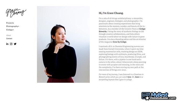 Sin embargo, recuerda que todos estos sitios web fueron creados con la ayuda de creadores de páginas web, principalmente Squarespace, pero herramientas como Webflow pueden hacer el trabajo bastante bien. ¡Tenlo en cuenta cuando busques la mejor herramienta de creación!