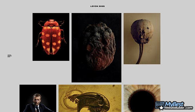 Al visitar levonbiss.com, serás recibido por una sola imagen ampliada que, al hacer clic en ella, te llevará a la sección destacada del sitio web. Con toda honestidad, este tipo de diseño provoca sentimientos de grandeza, lo que es muy bienvenido cuando se ve fotografía. En cuanto a páginas web de fotografía, Levon Biss posee un sitio muy limpio y bien realizado.