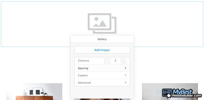Si quieres añadir una galería, por ejemplo, sólo tienes que elegir el elemento "Galería", arrastrarlo adonde quieras y empezar a realizar cambios; añadir imágenes, elegir el número de columnas, editar el espaciado, el pie de foto y aspectos más avanzados, incluyendo el borde y la proporción de la imagen. ¿No te habia dicho que este tutorial Weebly para principiantes es súper sencillo una vez que sigues cada uno de estos pasos?