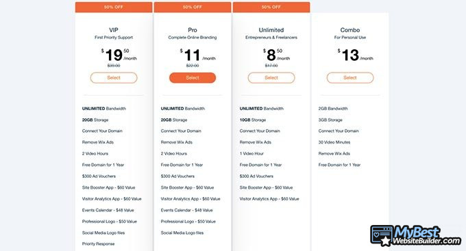 Con el descuento añadido, estoy bastante contento de poder decir que Wix tiene, ¡Las opciones de precio mas asequibles!