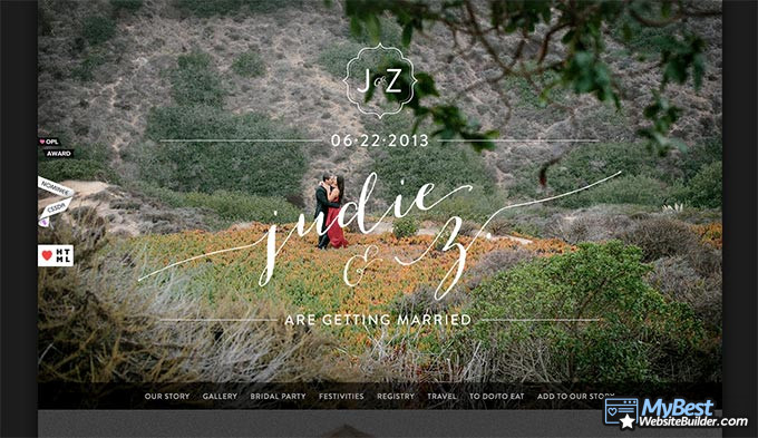 Una de las páginas web de bodas más formales de esta lista, judieandz.com emite un aura de profesionalismo en todo. Parecería que el sitio ha sido creado por verdaderos profesionales. Dicho esto, es uno de los mejores ejemplos, incluso para aquellos que buscan crear una página web.