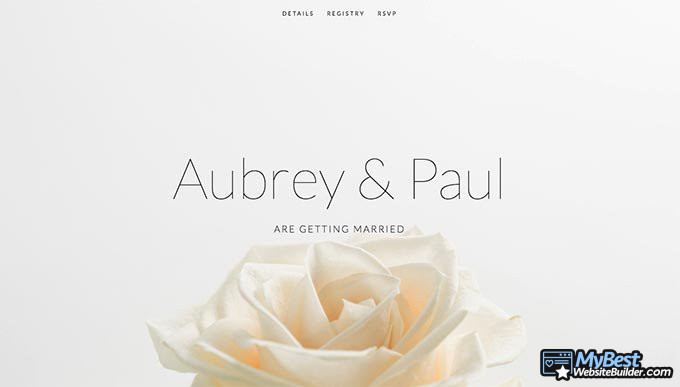 Si te interesa algo súper sencillo y directo, no encontrarás una web de bodas más directa que la de Aubrey & Paul. Esta ofrece sólo unas pocas características esenciales y ninguna foto. No es una de las ideas más creativas, ¡Pero sigue siendo una opción interesante!